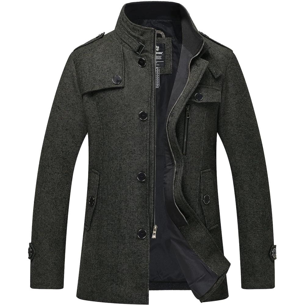 wantdo Men’s Wool Blend Jacket Stand Collar Windproof Pea Coat(Army Green(medium-thick))