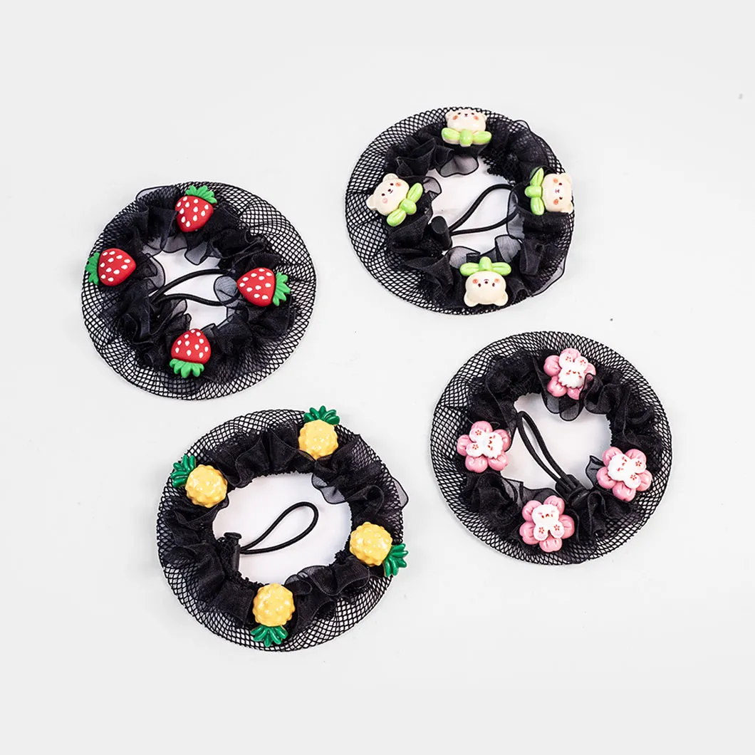KOUYANMEI 4-Pack Resin Accessories for Girls Elegant Casual Cute Bun Net Drawstring Adjustable Hair Accessories