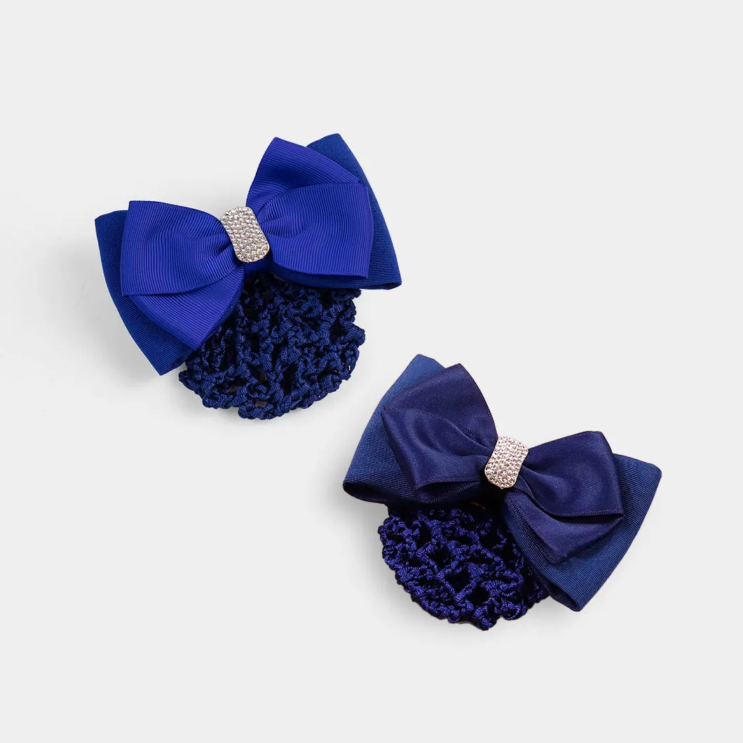 KOUYANMEI 1-Pack Diamond Solid Color Bow Hair Net, Hotel Stewardess, Nurse, Commuter Hair Accessories