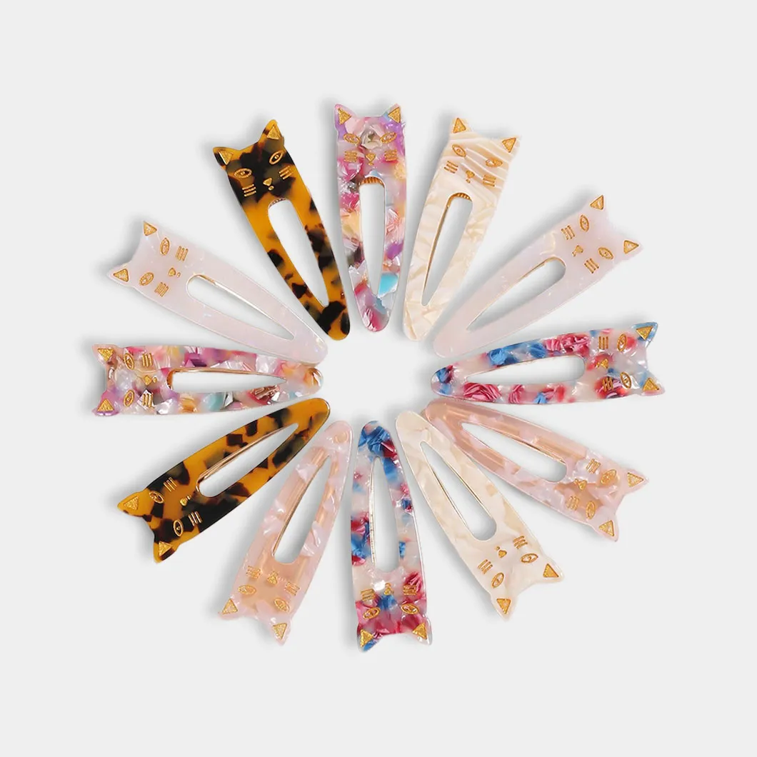 KOUYANMEI 1 Pair Of Cat Animal Acetic Acid Women’s Elegant And Cute Casual Hair Clips Duckbill Clip Hair Accessories For Women