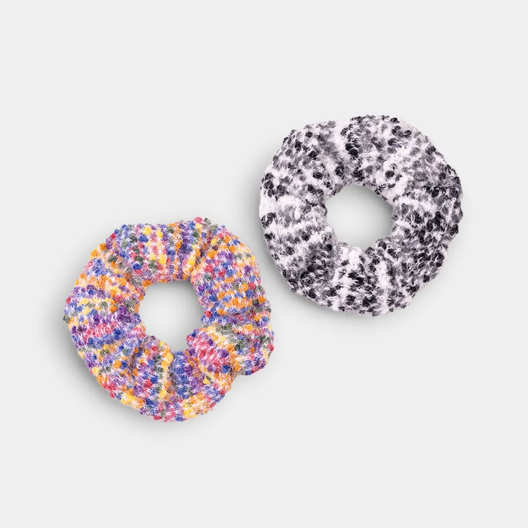 KOUYANMEI 1/2 Pack Plush Candy Color Splicing Elegant Casual Cute Elastic Hair Scrunchies Hair Accessories for Women