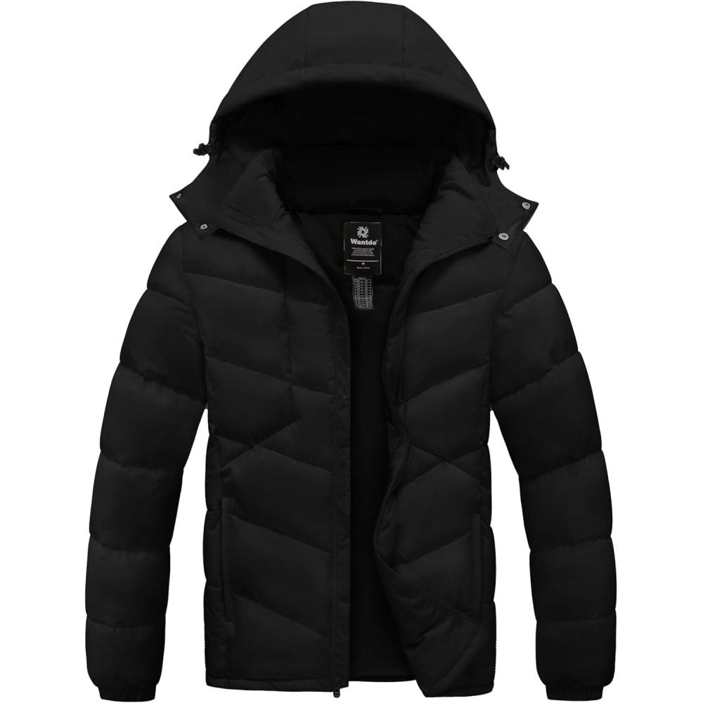 wantdo Men’s Warm Puffer Jackets Lightweight Winter Jacket with Hood Waterproof Winter Coat(Black)