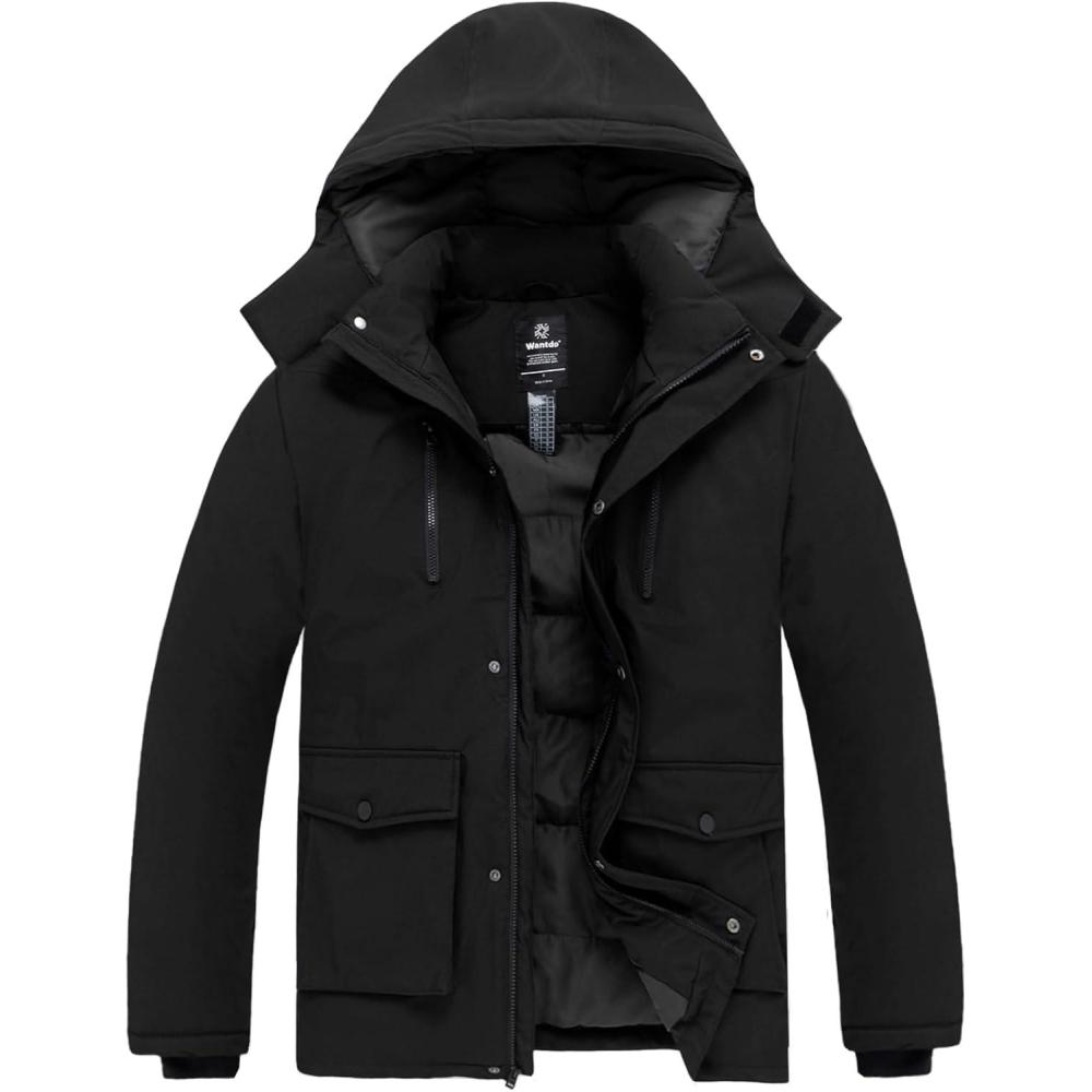 wantdo Men’s Thicken Winter Coat Warm Parka Jacket Puffer Jacket with Hood(Black)