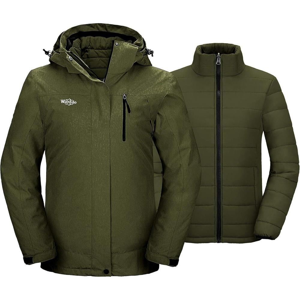 wantdo Women’s 3 in 1 Waterproof Ski Jacket Windproof Winter Snow Coat Snowboarding Jackets Warm Raincoat(Army Green)