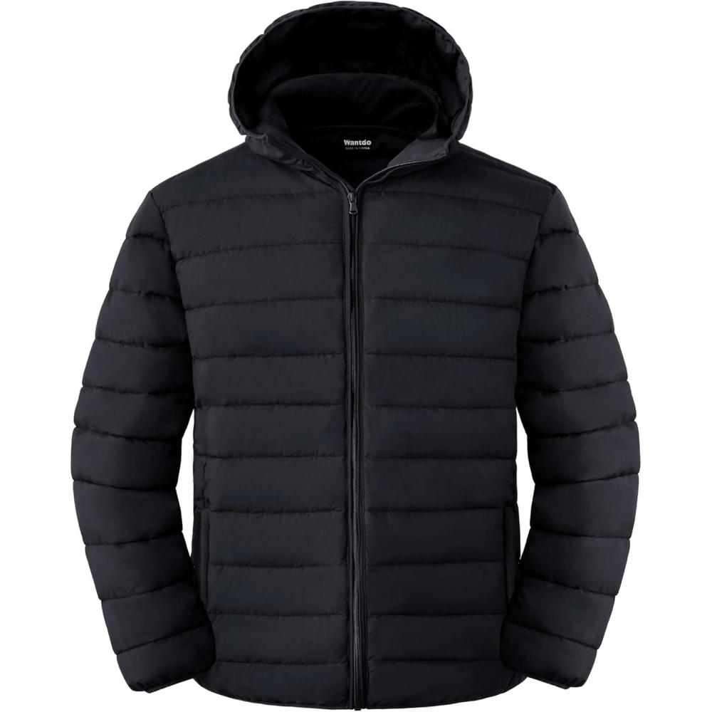 wantdo Men’s Big and Tall Lightweight Puffer Jacket Quilted Warm Winter Coat Windproof Winter Jackets with Hood(Black)